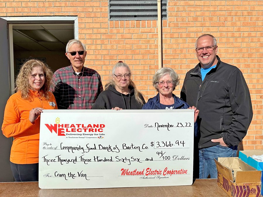 The cooperative also coordinated additional friendly school competitions across three other area school districts (Holcomb USD 363, Scott County USD 466, and Conway Springs USD 356), which helped raise several thousand more pounds of food across these communities. Winners from these additional school competitions received cash prizes from Wheatland Electric for their efforts.