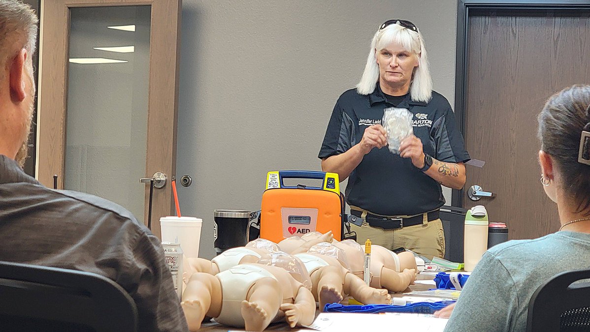 In all, 13 employees from all areas of the facility participated in the classes that were instructed by veteran nurse and emergency medical technician Jennifer Ladd from Barton Community College.