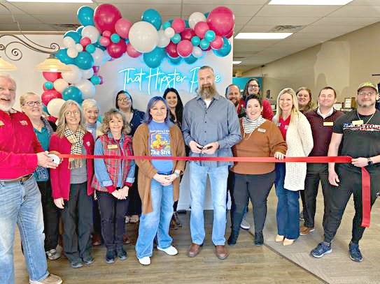 The Great Bend Chamber of Commerce staff and Ambassador Club joined Kristie and Jerry Carmichael, owners of That Hipster Place, to celebrate the business moving to its new, larger location at 1519 Main in Great Bend with a ribbon cutting Thursday morning. After three years at their previous location, the Carmichaels moved That Hipster Place downtown on Main Street.