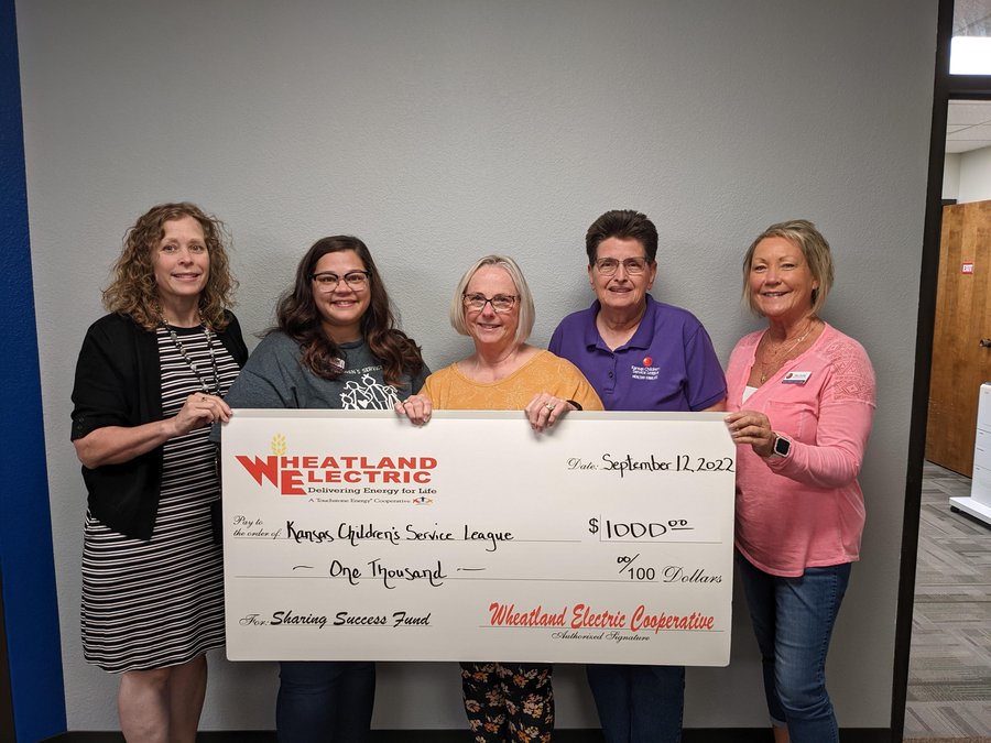 Wheatland Electric Cooperative Inc. announced that its Sharing Success Fund, managed by the Scott Community Foundation, has awarded a $1,000 grant to the Kansas Children’s Service League (KCSL) - Healthy Families.
