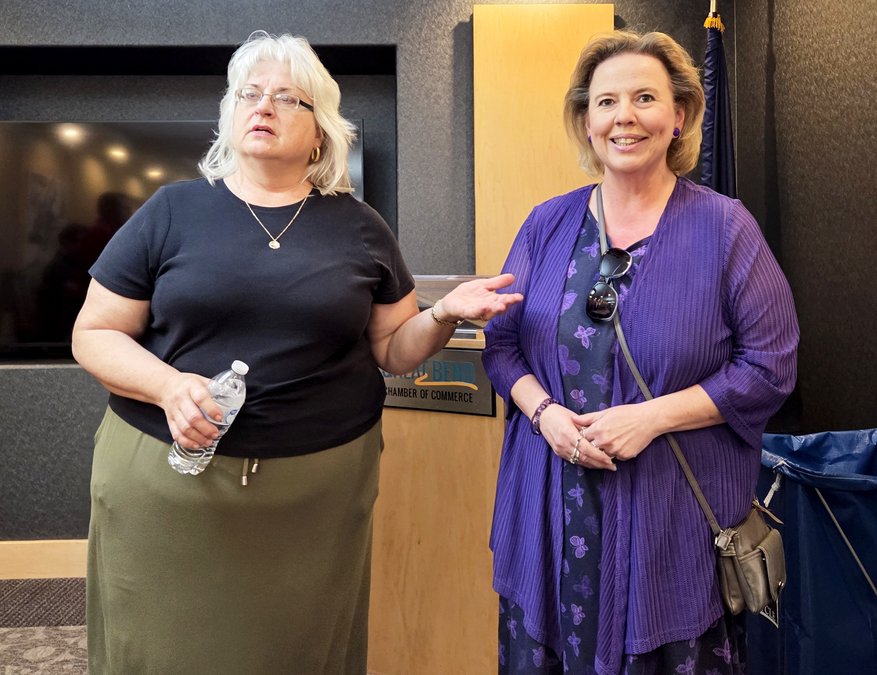 La Rena Hildebrand from the SouthWest Kansas Area Agency on Aging office in Great Bend explained OKEP and other services when SWKAAA hosted the April 10 Great Bend Chamber of Commerce Coffee at the Chamber office. She was joined by Michelle Pantaleo, executive director of SWKAAA, with a home office in Dodge City.
