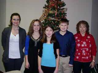 Students of vocal instructor Glenna Gaunt performed a program of Christmas music at a recent Pilot Club meeting. Shown left to right are soloists Brooke Smith, Chantelle McReynolds, Sarah Keller and Gabe Zorn, along with Glenna Gaunt who accompanied them on piano.