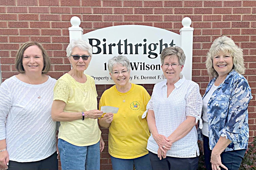 Daughters of Isabella Circle No. 744, Great Bend, recently presented a generous donation to Birthright Inc. Accepting the check on behalf of Birthright is Betty Schneider (third from left), Birthright Director and D of I member. Other D of I members pictured left to right are Judy Krebaum, Regent; Marilyn Petty, Treasurer; Catherine Huber, Birthright Representative; and Donna Gales; Vice Regent.