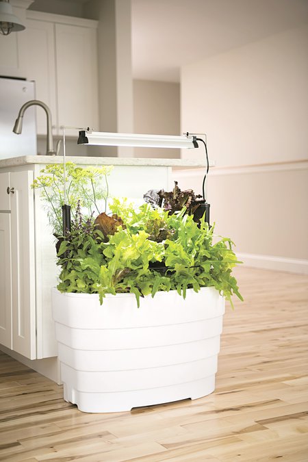 Boost the vitamins, minerals and fiber in your meals with leafy greens. Plant an indoor garden of leaf lettuce, spinach, arugula, baby leaf kale and beet greens. A self-watering pot with a built-in overhead light like the Gardener’s Revolution® Light Garden Kit (gardeners.com) makes it easy to grow a variety of greens at the end of a counter, next to a desk or anywhere you have a few square feet of space.