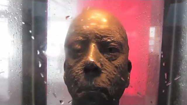 The piece is the bust of a man inside a glass case and a warning on the case tells people to not look into the eyes of the statue. So, what do people do? Look right into the eyes of course.