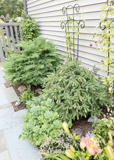 Don’t let a lack of space deter the planting of evergreens. Dwarf varieties are perfect for smaller landscapes and planting beds. Combine these with other small-scale shrubs, perennials and groundcovers for additional seasonal interest.