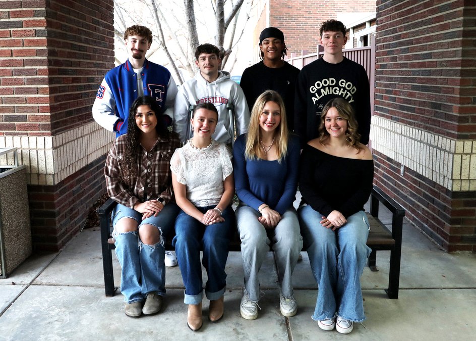 The candidates for Hoisington High School’s Winter Homecoming are pictured. Front row, from left:: Shyria Quintana, Julie Antoniani, Julia Schlessiger and Shelby Steffan. Back row: Layton Wirtz, Adam Hayes, Gabriel Martinez and Drake Hosman.