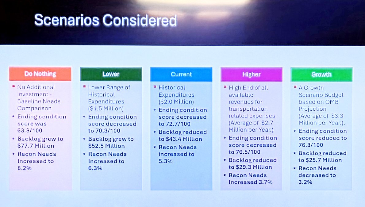 “We believe you’ve been spending $1.5-2 million a year on streets over the past five years,” he said. “The plan I’m showing you, has you spending even more. $2.7 million per year would keep things about as good as they are today.”