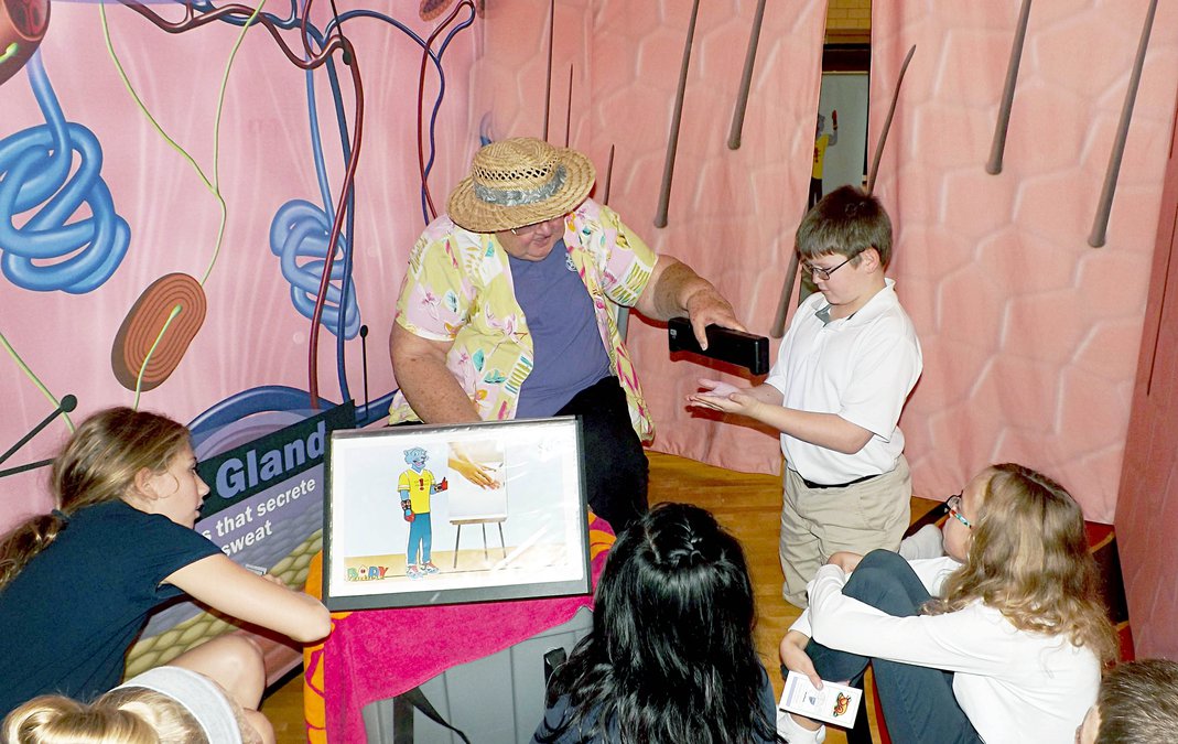 Walking over the tongue and into the mouth, students visited the brain, stomach, small intestine, heart, lungs, bones, muscles and skin for the inside scoop on nutrition, exercise and other health-related topics. The walk-through exhibit measures 45 by 50 feet.