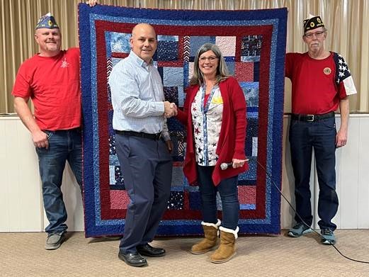 United States Navy veteran Daniel Finnegan was awarded a Quilt of Valor from Golden Plains Quilts of Valor on January 28, 2022, at the American Legion Post 180 in Great Bend, Kansas. Finnegan, who is now the mayor of Ellsworth, served from 1984 to 1988.