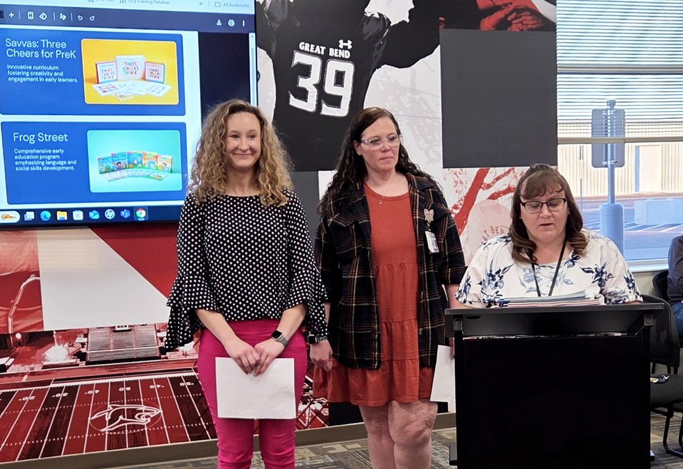 Curriculum adoptions at Great Bend USD 428 involve more than textbooks. Publishers share programs that come with physical books, kits, online materials, workbooks and more, including training and lesson plans for teachers. For each subject, a curriculum study team looks at options and narrows them to two. Those finalists are then used in actual classrooms for a semester-long pilot. Each curriculum is on a seven-year rotation.