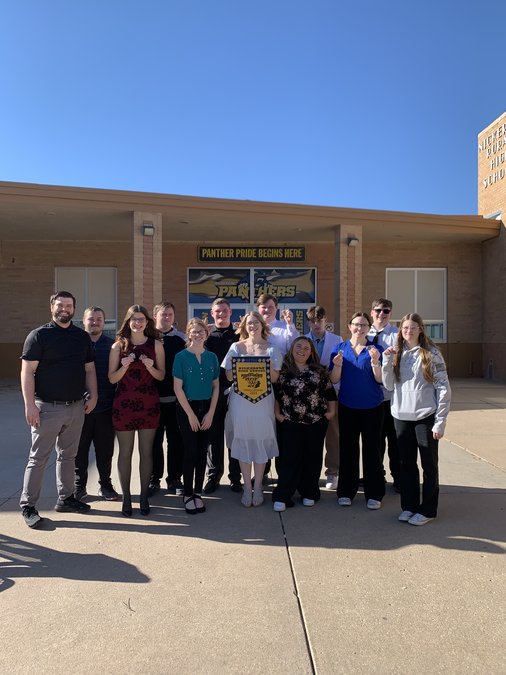 Hoisington High School’s forensics team took 19 entries to Nickerson’s tournament on March 2. Head coach Drew Reisner and the team of (right to left) Steven Demel, Jessica Lovett, Hunter Adams, Melody Braddy, Brayden Stevenson, Baylie Fyler, AJ Thurman, Campbell Husted, Xavier Stevenson, Vada Kaiser, Ethan Ney, and Calli Brown walked away with a hard-fought second place sweepstakes award. Eight of Hoisington’s entries made it to the final round. Jessica Lovett placed 2nd in Informative Speech and 3rd in Serious Solo Acting. AJ Thurman placed 3rd in the Program of Oral Interpretation. Calli Brown placed 6th in Serious Solo Acting. Brayden Stevenson placed second in Impromptu and Extemporaneous Speaking. Vada Kaiser placed 3rd in Humorous Solo Acting and 1st in Original Oration. The team will head to Goddard on March 9.