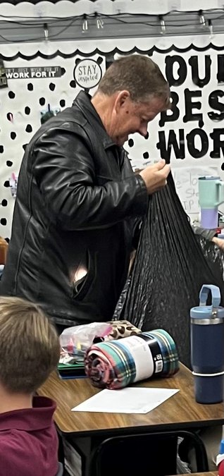 To thank the students and help them remember what they did, Burton and Birney handed out Christmas throw blankets. “I said, ‘Every time you wrap this blanket around you, you can think about someone wrapping a warm sleeping bag around them,’” Burton said.