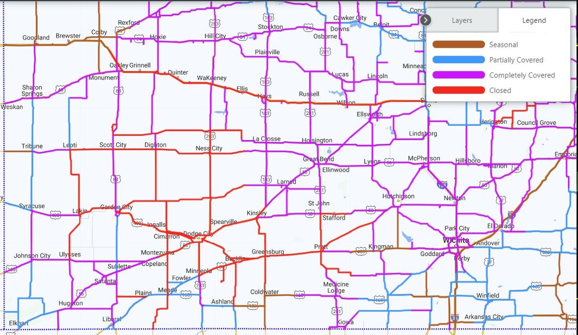 1 PM road update...major highways in central and southwest Kansas are starting to open with some of the roads now at partially covered. With the sun and temperatures getting near freezing we should see more melting in the afternoon on treated roads. More information is at kandrive.org