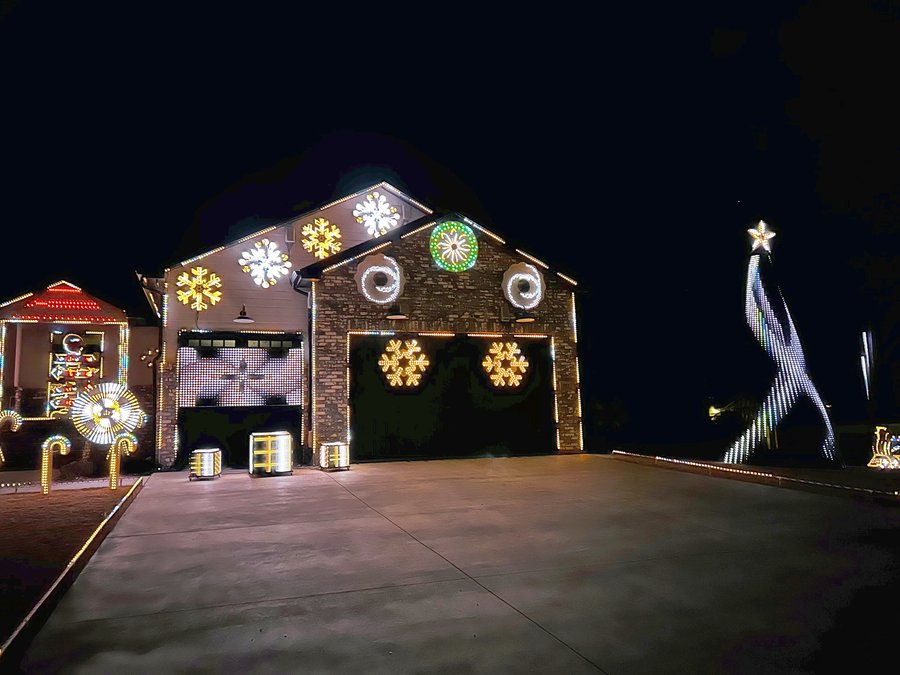 Several years ago, he watched a local display that was synchronized with music and knew he had to enhance his own display. “I started with a couple thousand lights and have grown every year to 39,743, but who’s counting anyway?” he said with a chuckle.