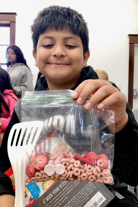 At least four kids went home the very night of the program and prepared a recipe. Dishes they made so far: Oven Baked Grilled Cheese, Ice Cream Cake, Roasted Fingerling Potatoes, Chocolate Dipped Banana Bites, and French Toast & Cheesy Scrambled Eggs.