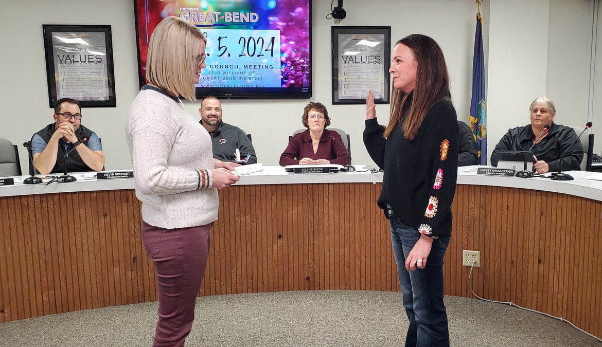 Mayor Cody Schmidt said two candidates were interviewed and Mingenback was the unanimous choice. Her term will run through January 2025. Schmidt also appointed Grady Bolding to fill a vacancy on the Great Bend Public Library Board.