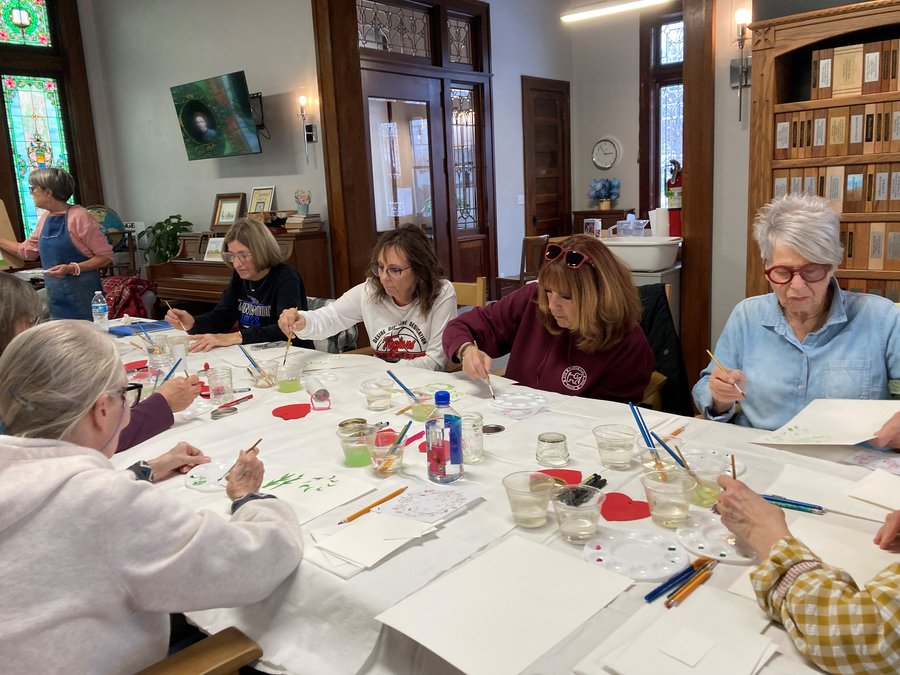 Friday, Nancy Hildebrand led a great workshop on watercolor painting. We had a full table of ladies that had a great time making beautiful pictures! The technique was easy and so beautiful that their practice sheet even looked great!