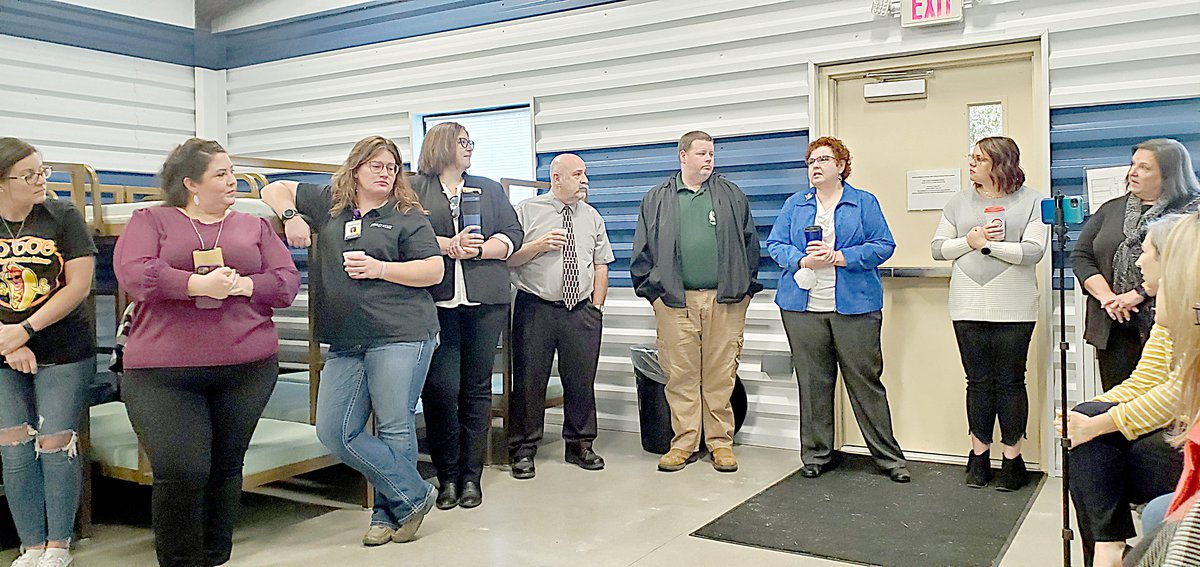 Barton Community College officials Thursday treated Great Bend Chamber of Commerce members to a tour of the new Trails Ends Lodge at its Camp Aldrich facility. This recently completed building replaced the original Trails End Lodge, which was destroyed by a fire in 2018.