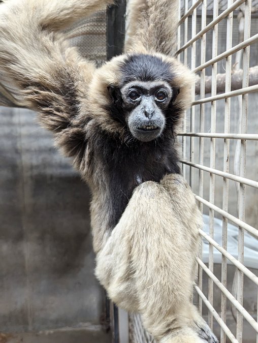 “Our gibbons are part of the Species Survival Plan,” Burdick said. “These are well-planned out entities that look at genetics and how best to pair animals for successful breeding and maintaining genetic diversity. These preserve the genetics to maintain healthy populations of animals whose numbers are dwindling in the wild due to habitat loss, poaching, the pet trade and deforestation. Because we are a small facility, we often take in older animals or non-breeding individuals. Manny, our male gibbon, has been here since 2022 and is almost 15 years old. At his previous facility he had a brain infection that affects his mobility and cognitive abilities, so he isn’t compatible with a normal individual. We lost our previous female gibbon, Rerun, who was almost 34, last year to age-related issues in various organ systems. We have been working with the SSP to bring in a suitable individual for Manny.