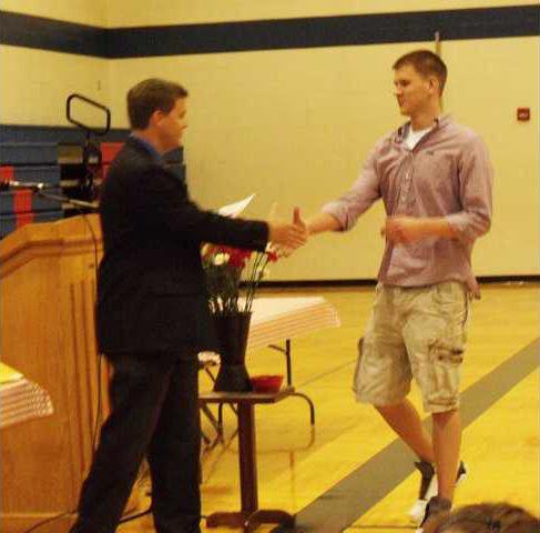 Brett Whelan, right, was awarded the Kansas State High School Activities Association Citizenship Award by Ellinwood High School Principal Brian Rowley at the EHS Academic Awards Reception. Student Michelle Klepper also received the award.