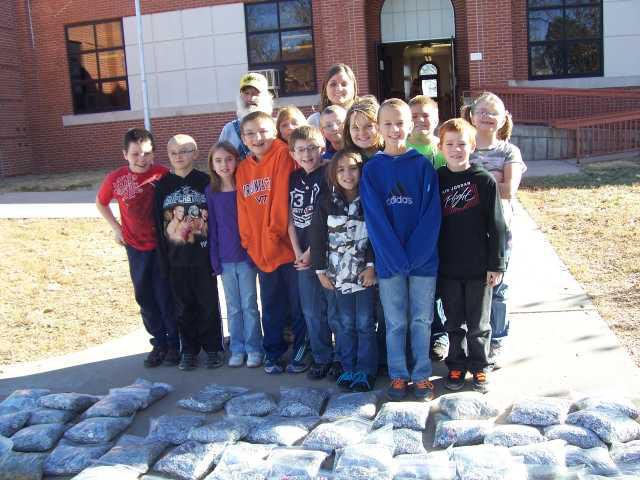 Students at Lincoln Elementary in Hoisington recently collected can tabs to donate to the Ronald McDonald House charities. Floyd Ward of Great Bend saw the article in the paper and wanted to give the tabs he had collected to the Lincoln students. Thank you, Mr. Ward, we really appreciate your generosity, said the students.