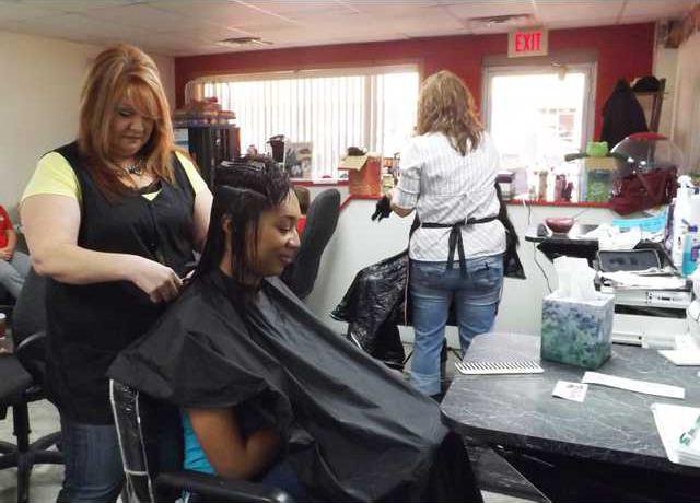 Beauticians at Head Quarters beauty shop cut hair on Saturday to benefit Great Bend cancer victim Annetta Mermis. Mermis, a customer at the business, was diagnosed with osteosarcoma in April.
