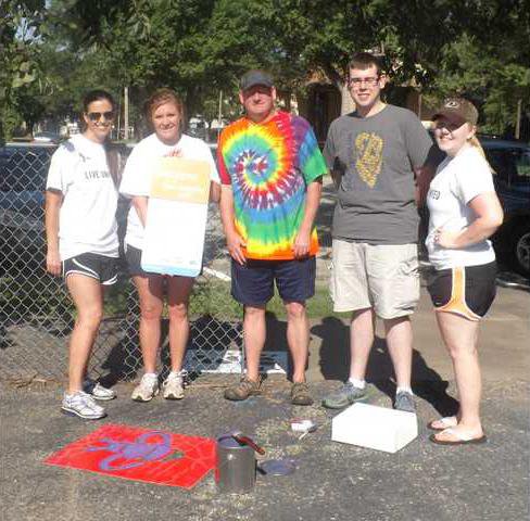 In Claflin, Desa Bahr, Christina Hayes, Steve Kummer,Austin Coyan and Emily Goad all volunteered to paint on a beautiful August morning, complete with bright sunshine, pleasant temperatures and no wind. The trail is located at the Claflin Recreation Center.