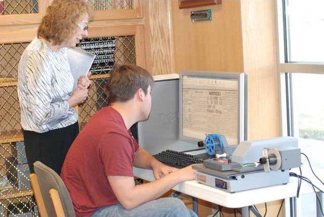 Barton history instructor Linda McCaffery, who uses this equipment for her research, is available in the Cohen Center to assist people with the scanner and reader on Wednesday afternoons beginning at 1:30 p.m. Hester or a library staff member will assist on other days during library hours, which are 2 to 10:30 p.m. Sunday; 7:30 a.m. to 10:30 p.m. Monday through Thursday; and 7:30 a.m. to 4:30 p.m. Friday. Hester would also like to have some volunteers from the community come in to assist people. They would be asked to give one hour or more of their time to help others use the equipment. Anyone interested may contact Hester by phone, 620-792-9364, or e-mail, hesterm@bartonccc.edu.