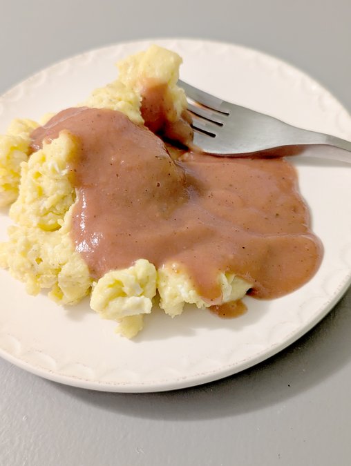 In case you haven’t met this old friend yet, tomato gravy is exactly what it sounds like. Tomato, made into a gravy. My grandma had a special hankering for tomato gravy and fried cornmeal mush, and I think that’s the only way I’ve ever been served it. I don’t feel sheltered in my food experiences at all, but somehow I was never introduced to tomato gravy and scrambled eggs, though it’s apparently not a niche thing.