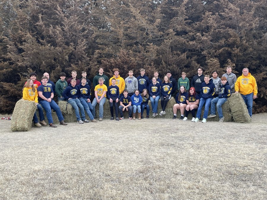 Pay a dollar and wear your hat all day in school was an event that went over well, especially with the guys (but the gals bought in too). FFA donated the proceeds for prom prizes in April. The same day was also sport your FFA gear as the chapter picture, featuring a hay bale background and prop, would be taken later in the day.