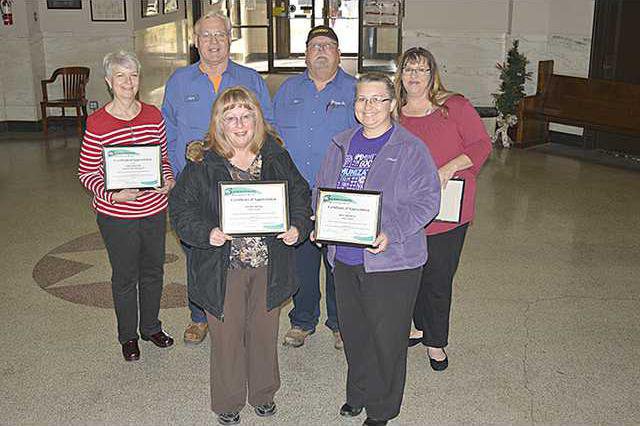 Personnel were recognized for continuous service for five, 10, 15, 20, 25, 30 and 45 years. Commissioners took turns shaking hands with the honorees after they received their certificates from Employee Relations Committee President Wendy Birzer.