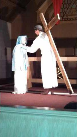 Jesus (Shelby Waterhouse) meets his mother Mary (Traci Ross), in a scene from the fourth Station of the Cross. Holy Trinity Church’s youth group in Timken reenacted the Living Stations of the Cross on Good Friday, March 29. Other cast members were Matthew Wagner, Raymond Bruton, Haley Vondracek, Cody Bruton, James Flax, Gabriel Oddo, Allie Seltman, Jared Vondracek, Laken Vondracek, Sabrina Pechanec and Preston Ross.