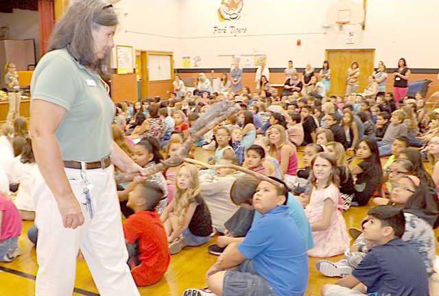 Thursday's kickoff for One District One Book included a visit to Great Bend USD 428 elementary schools from two Sedgwick County Zoo zookeepers. They came with live animals.