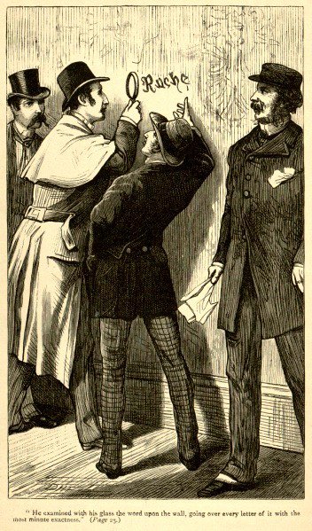 A Study in Scarlet is the first time a detective is described as using a magnifying glass in a novel.