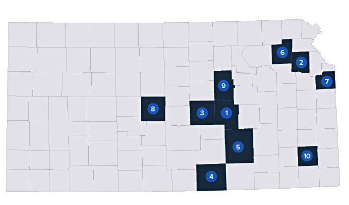 “This study looked specifically at income, net worth and debt-per-capita in counties across the country; however, poverty rates were not included as part of the criteria,” Smith said. “This study shows that Barton County is on the high end for per-capita net worth compared to local income and debt, which helped it rank in the top 10 counties in Kansas.”