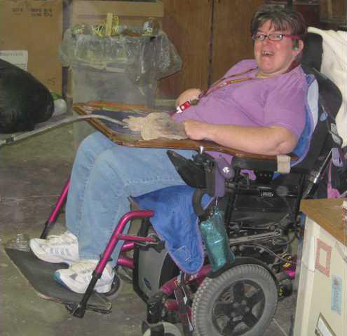Northcutt has cerebral palsy, which makes it difficult to control her arm movements. The staff re-configured a control mechanism and now she can work from her specially modified, electric wheelchair.