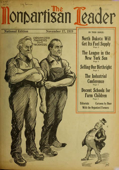 Starting in 1917, a political organization called the Nonpartisan League (NPL) began soliciting Kansas farmers for memberships. Founded in North Dakota in 1915 by Arthur C. Townley, a former organizer for the Socialist Party of America, the group advocated for state control of farm-related industries, including mills, grain elevators, and banks. Although their initial political efforts in North Dakota brought their candidates into control of the state legislature, the governor’s office, and a seat in the U.S. House of Representatives, their position of power in that state didn’t last long.