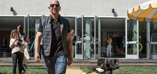 Amazon CEO Jeff Bezos posted a photo on Twitter Monday of him walking a dog. Only it wasn't a traditional puppy. - photo by Herb Scribner