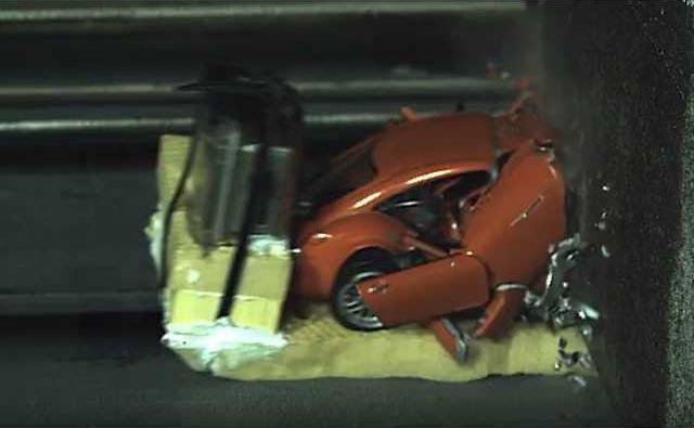 While the peaceful sounds of "Silent Night" set the mood in the background, we see a toy car, plastic Santa Claus, Barbie and others explode into bits after hitting cement at 124 mph. It's legitimately cool.