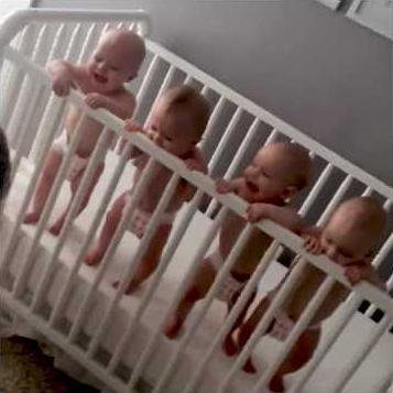 Enter this featured video with a set of quadruplet babies standing in a row in a crib. Mom has them all entertained with funny noises and tickles, and the babies respond in kind with giggles for days. Its an incredible amount of happy all in one place.