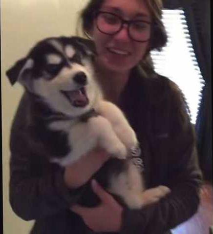 This husky pup named Ramsey is doing his very best to follow his humans lead and bone up on his howling. (Im not even sorry about that pun.) But instead of eliciting spine tingling with a primal howl, Ramsey produces a sound that could be anything from a Muppet monster to a human baby to a baby velociraptor with a starring role in the upcoming Jurassic World.