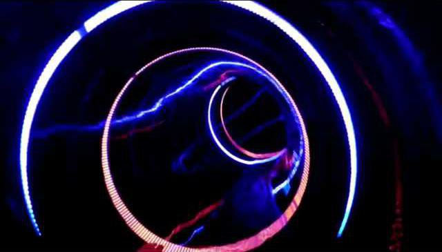 The inside of the slide would be pitch black, which might be an interesting experience in and of itself, but the walls are lined with jewel-toned LED lights in different configurations and flashing patterns. Basically, its a sort of laser light show water slide, and all they need to do is pump in a little Pink Floyd to make the experience complete.