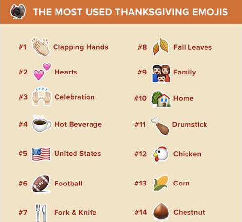Emojipedia, the website that has definitions on all emojis, put together a list of the most-used Thanksgiving emojis shared on the holiday.