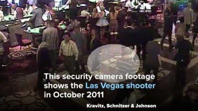 Newly released security video shows shooter Stephen Paddock at a Las Vegas hotel and casino in 2011, nearly six years before he opened fire on a crowd and killed 59 people across the street from his room at the Mandalay Bay hotel casino.
