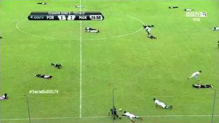 On Saturday, a swarm of bees invaded the pitch during a game between Liga de Portoviejo and Manta FC in Ecuadors second division. The bees flooded the air in the 26th minute of the game at Reales Tamarindos Stadium, according to Mashable.