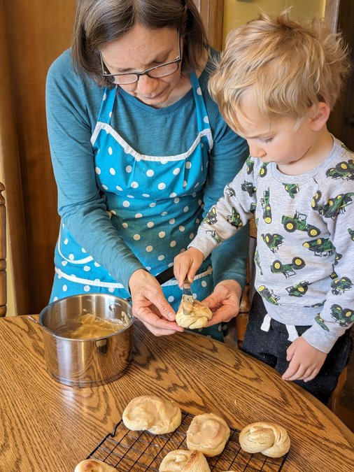 Grandma Mayer’s Danish Pastries (greatly abbreviated version) These are a bit of a legend around here, and for good reason. I remember seeing these caramel-frosted knots filling up Grandma’s table as she finished them, and arranged in Tupperwares and on paper plates to keep eating and to give away. I had no idea they were so much work — I’ve made laminated dough before, but I think only once, because it was A Thing. Fortunately, that experience already in my repertoire greatly assisted my experience following Grandma’s recipe, which was definitely not what I would call overly complete (it reminds me of the technical round in the Great British Baking Show, if that tells you anything). It’d be much too long for this column if I rewrote it in a more helpful fashion, so look up homemade puff pastry if you want to start from scratch for yours. It felt like a shame to frost such incredibly layered, flaky pastries, but they did go from amazing to phenomenal, at least with our attached memories.