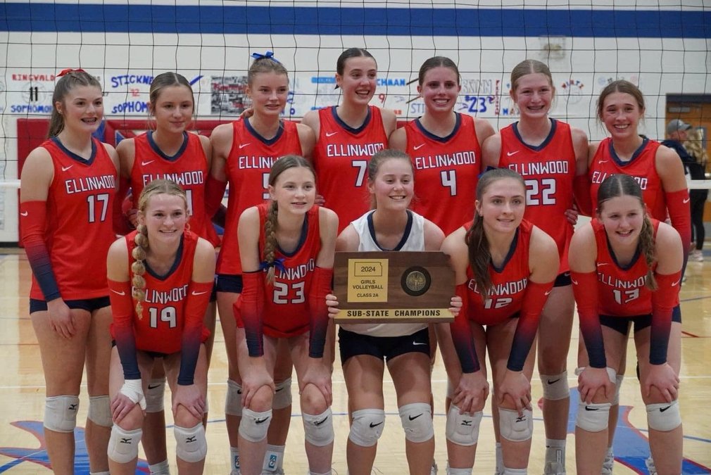 ELLINWOOD — No. 2 ranked Ellinwood (39-2) defeated Hays TMP, 25-23, 25-14 to qualify for the 2A state volleyball championship after beating Sterling, 25-13, 25-11 in the semifinals. Ellinwood qualified for state volleyball in 2021 and 2018.
