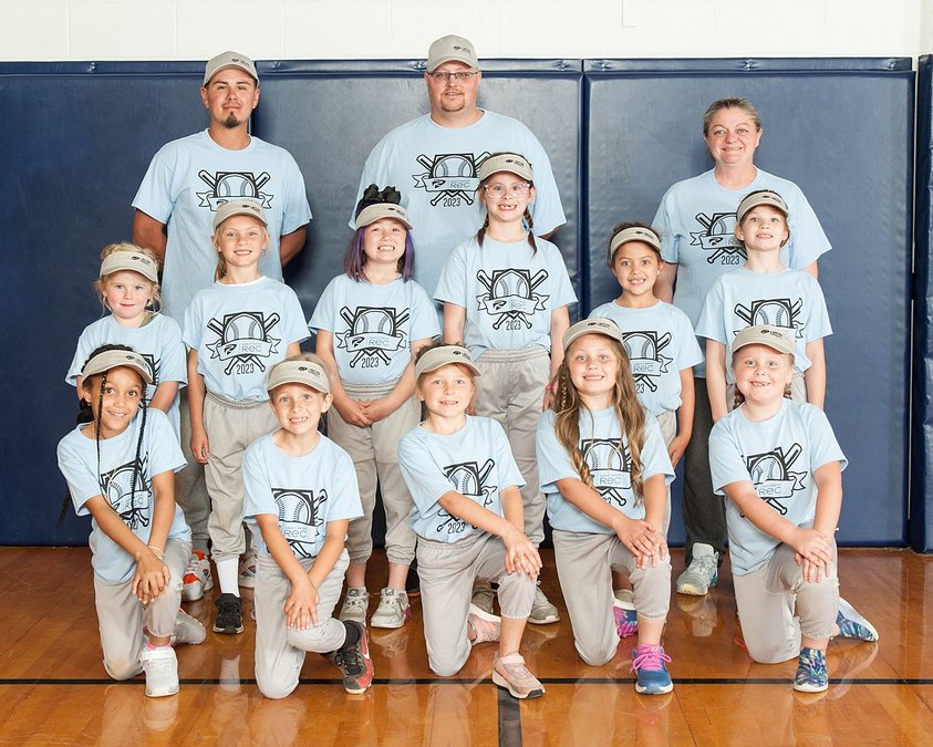 The All-Starz (Light Blue) compete in the Great Bend Recreation first/second girls Rookie League coached by Aaron Potter. Team members are Cailey Potter, Grace Miller, Henley Nairn, Mila Ortiz, Zowiana Harbaugh, Keeley Meyer, Emma Fairchild, Macey Wells, Abyagail Mills, Remington Langston, Evelyn Schenek.
