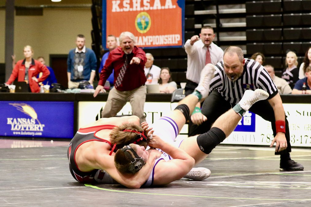 170–No. 4 Joshua Ball (26-4), third; Ball pinned Dunbar, Mission Valley, 1:52; Seabolt, Cimarron def. Ball, 12-5; Ball def. Claibourn, Fredonia, 6-1; Ball def. Loudermilk, Sabetha, 4-3; Ball def. Werner, Plainville, 15-4; 3RD–Ball pinned Gavon Uehlin, Oberlin, 1:40; Josh Kramer, L (9-18); Loudermilk, Sabetha pinned Kramer, 1:40; Budke, Chase Co. pinned Kramer, 3:45